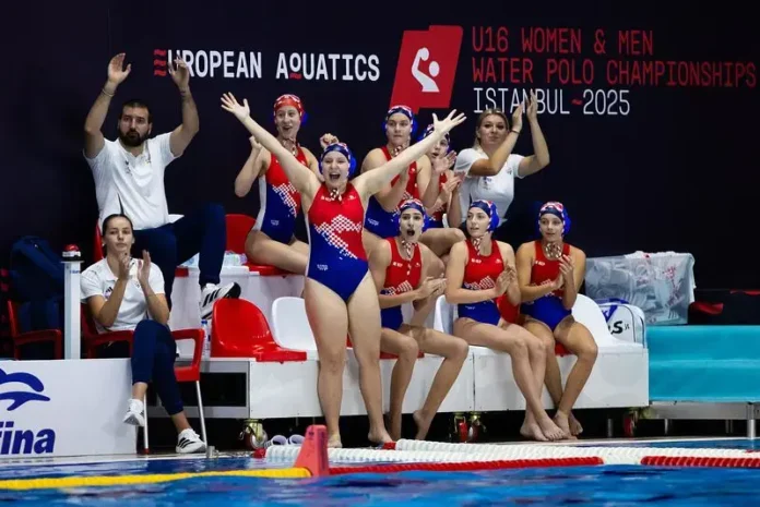 Hrvatska ženska vaterpolo reprezentacija do 16 godina stigla je jučer do prve pobjede na Europskom prvenstvu u Istanbulu. U dvoboju osmine finala, izabranice Hrvoja Kundida su s 22:8 pobijedile reprezentaciju Rumunjske.
